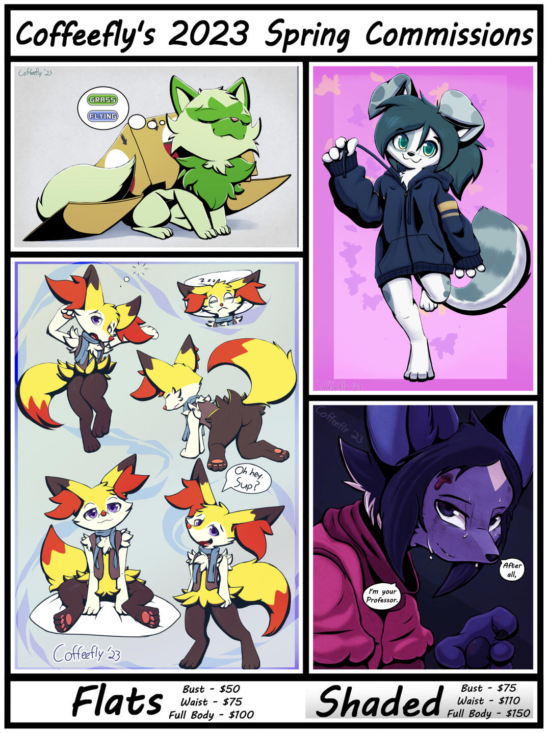 Below are the available commission types I offer. Payment is done through paypal (you don't need a paypal account to pay the invoice)Commissions open via slots through a google form. I post on twitter, FA, and all other sites when the form is open. It is NOT first come first serve.